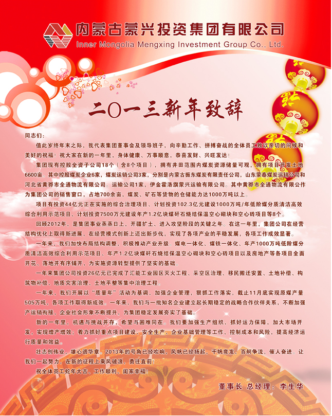 董事長(zhǎng)2013年新年致辭
