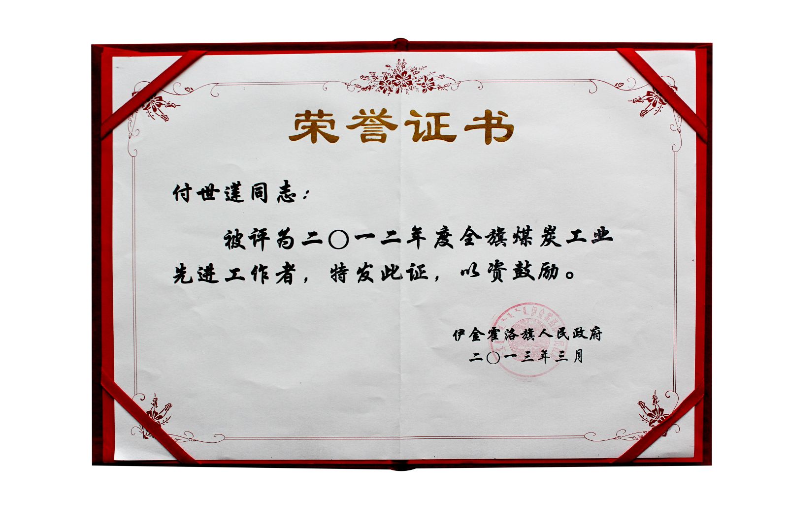 【本網(wǎng)訊】近日,伊金霍洛旗人民政府下發(fā)了《伊金霍洛旗人民政府關(guān)于表彰2012年度全旗安全生產(chǎn)工作和煤炭工業(yè)先進(jìn)集體和先進(jìn)工作者的通報(bào)》,通報(bào)表彰了2012年度在安全生產(chǎn)和煤炭工業(yè)領(lǐng)域涌現(xiàn)出的20名安全生產(chǎn)工作先進(jìn)工作者、4個(gè)煤炭工業(yè)先進(jìn)集體和13名煤炭工業(yè)先進(jìn)工作者。其中,我集團(tuán)公司董事、副總經(jīng)理付世蓮榮獲“伊金霍洛旗2012年度煤炭工業(yè)先進(jìn)工作者”榮譽(yù)稱號(hào)。