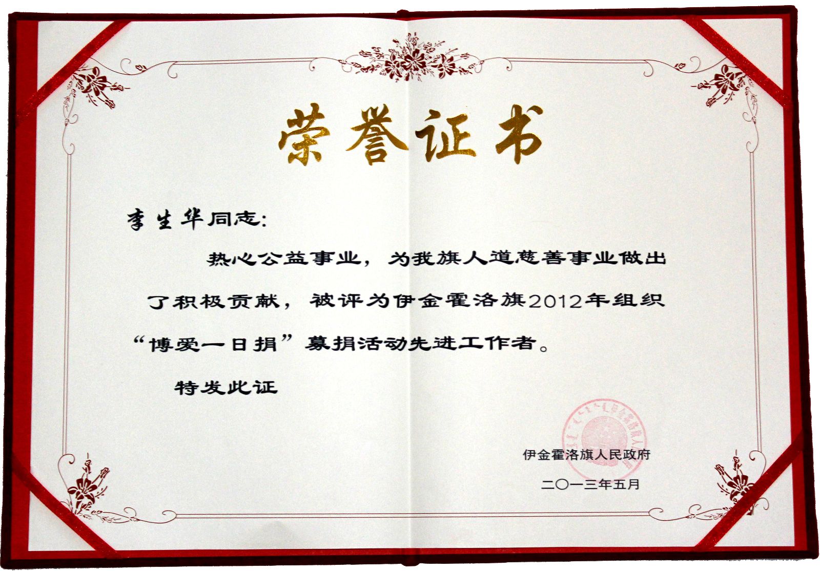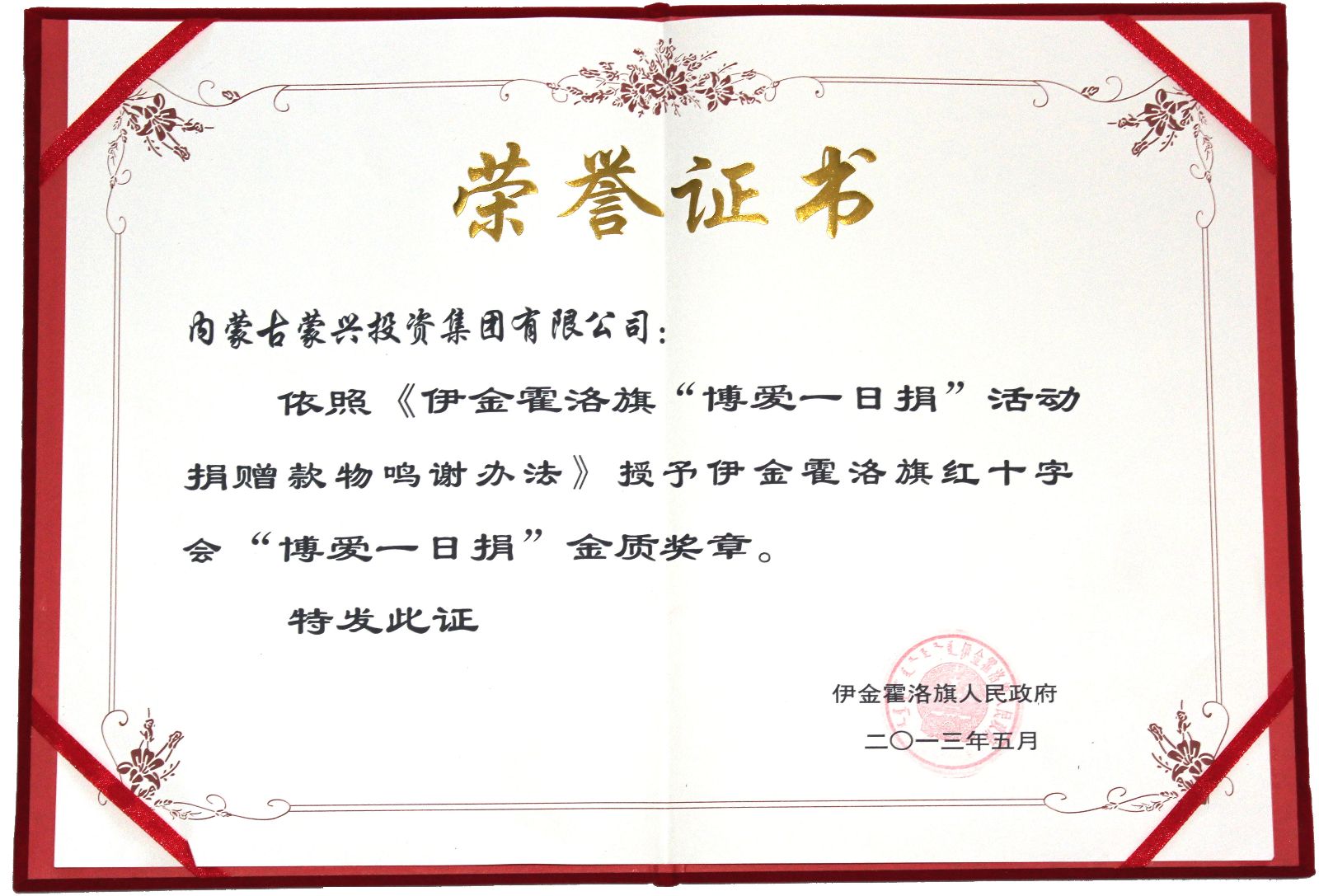 【本網(wǎng)訊】5月8日上午,“伊金霍洛旗紅十字會(huì)工作會(huì)議暨旗紅十字會(huì)三屆四次理事會(huì)”在伊旗阿鎮(zhèn)創(chuàng)業(yè)大廈B座3樓會(huì)議室召開(kāi)。會(huì)議對(duì)2012年度在公益事業(yè)中貢獻(xiàn)突出的集體和個(gè)人進(jìn)行了表彰。 蒙興集團(tuán)在發(fā)展企業(yè)的同時(shí),積極參與慈善公益事業(yè)。在2012年“博愛(ài)一日捐”活動(dòng)中,內(nèi)蒙古蒙興投資集團(tuán)有限公司和蒙興集團(tuán)內(nèi)蒙古振東煤炭有限責(zé)任公司分別募捐人民幣10萬(wàn)元和5萬(wàn)元,依照《伊金霍洛旗“博愛(ài)一日捐”活動(dòng)捐贈(zèng)款物鳴謝辦法》,被分別授予伊金霍洛旗紅十字會(huì)“博愛(ài)一日捐”金質(zhì)獎(jiǎng)?wù)潞豌y質(zhì)獎(jiǎng)?wù)拢幻膳d集團(tuán)董事長(zhǎng)、總經(jīng)理李生華先生長(zhǎng)期關(guān)注并投身公益事業(yè),為伊金霍洛旗人道慈善事業(yè)做出了積極貢獻(xiàn),被評(píng)為伊金霍洛旗2012年組織“博愛(ài)一日捐”募捐活動(dòng)先進(jìn)工作者。 蒙興集團(tuán)自成立以來(lái),一直不忘承擔(dān)社會(huì)責(zé)任,不忘支持社會(huì)公益事業(yè),近年來(lái),先后為伊金霍洛旗、鄂爾多斯市乃至國(guó)內(nèi)其他地區(qū)公益事業(yè)捐款累計(jì)達(dá)1500多萬(wàn)元,贏得了社會(huì)各界的一致贊譽(yù)!