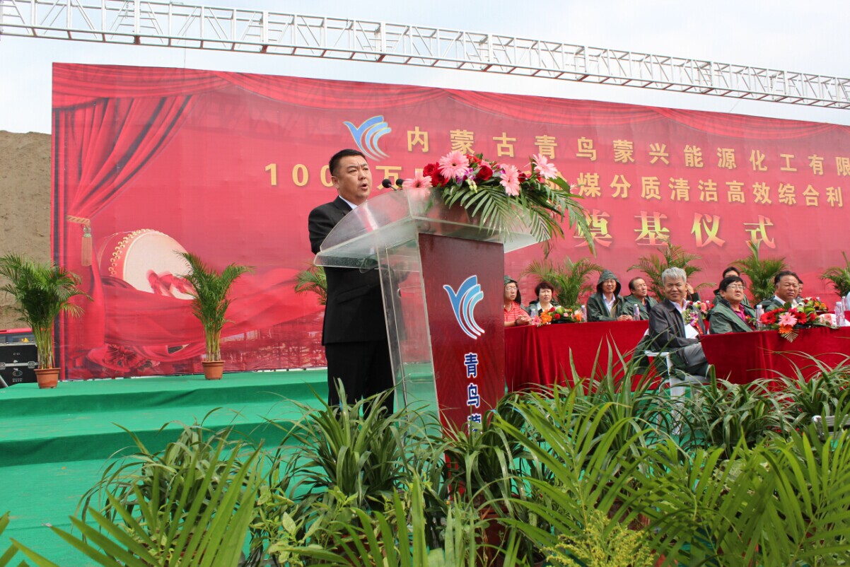 在奠基儀式上,我集團(tuán)公司執(zhí)行董事、內(nèi)蒙古青鳥蒙興能源化工有限公司總經(jīng)理張東代表投資方致辭。他說:我公司《1000萬噸/年低階煤分質(zhì)清潔高效綜合利用示范項目》是一項全新事業(yè)的開始。項目的建設(shè)不僅會促進(jìn)北大青鳥、蒙興集團(tuán)的自身發(fā)展,也必將改善當(dāng)?shù)氐幕A(chǔ)設(shè)施和生態(tài)環(huán)境建設(shè),提高當(dāng)?shù)鼐用竦纳钏?,帶動?dāng)?shù)叵嚓P(guān)產(chǎn)業(yè)的發(fā)展,增加地方財政收入和就業(yè)機(jī)會,將為地方經(jīng)濟(jì)發(fā)展做出更大貢獻(xiàn)。